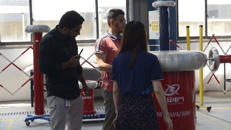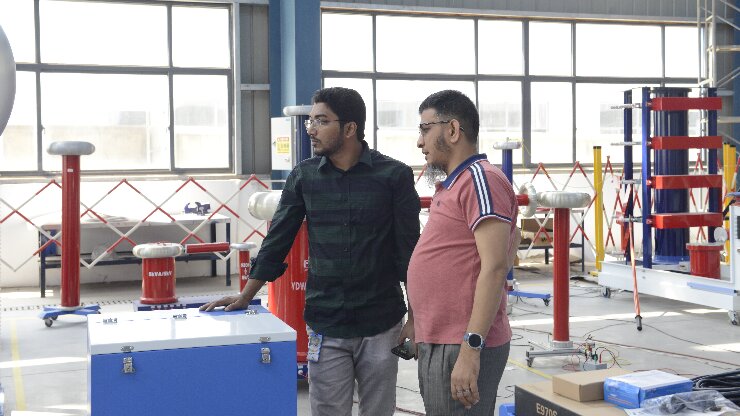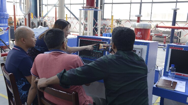 在武漢市合眾電氣技術團隊的陪同下,孟加拉客戶深入參觀了智能化生產車間與高壓實驗室??蛻糁攸c觀摩了局部放電測試系統的現場演示,對其高精度檢測能力與抗干擾性能表示認可;在沖擊電壓發生器測試區,設備穩定的波形輸出與模塊化設計引發了客戶濃厚興趣??蛻衄F場表示:"合眾電氣的全流程質量控制體系與國際標準接軌,完全符合孟加拉電網試驗項目的嚴苛要求。"