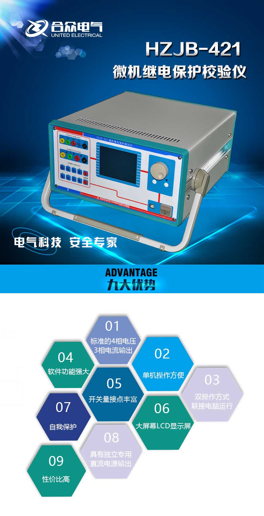 HZJB-421微機(jī)繼電保護(hù)校驗(yàn)儀作者:合眾電氣發(fā)布時(shí)間:2016-08-29瀏覽量:10070 次字體顯示:【大】【中】【小】 上一篇: HZDL-431電容電流測試儀下一篇: ZKD-303真空開關(guān)真空度測試儀
