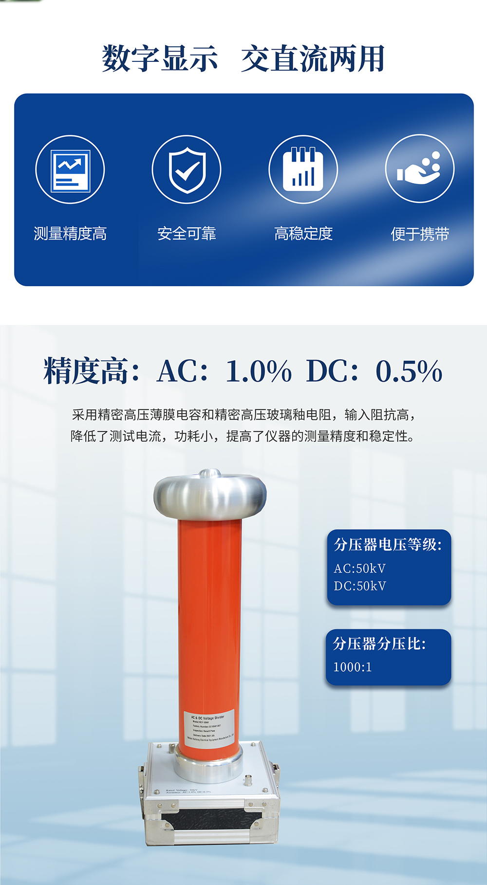 1,四位半液晶顯示,最高分辨力達(dá)到0.001kV;