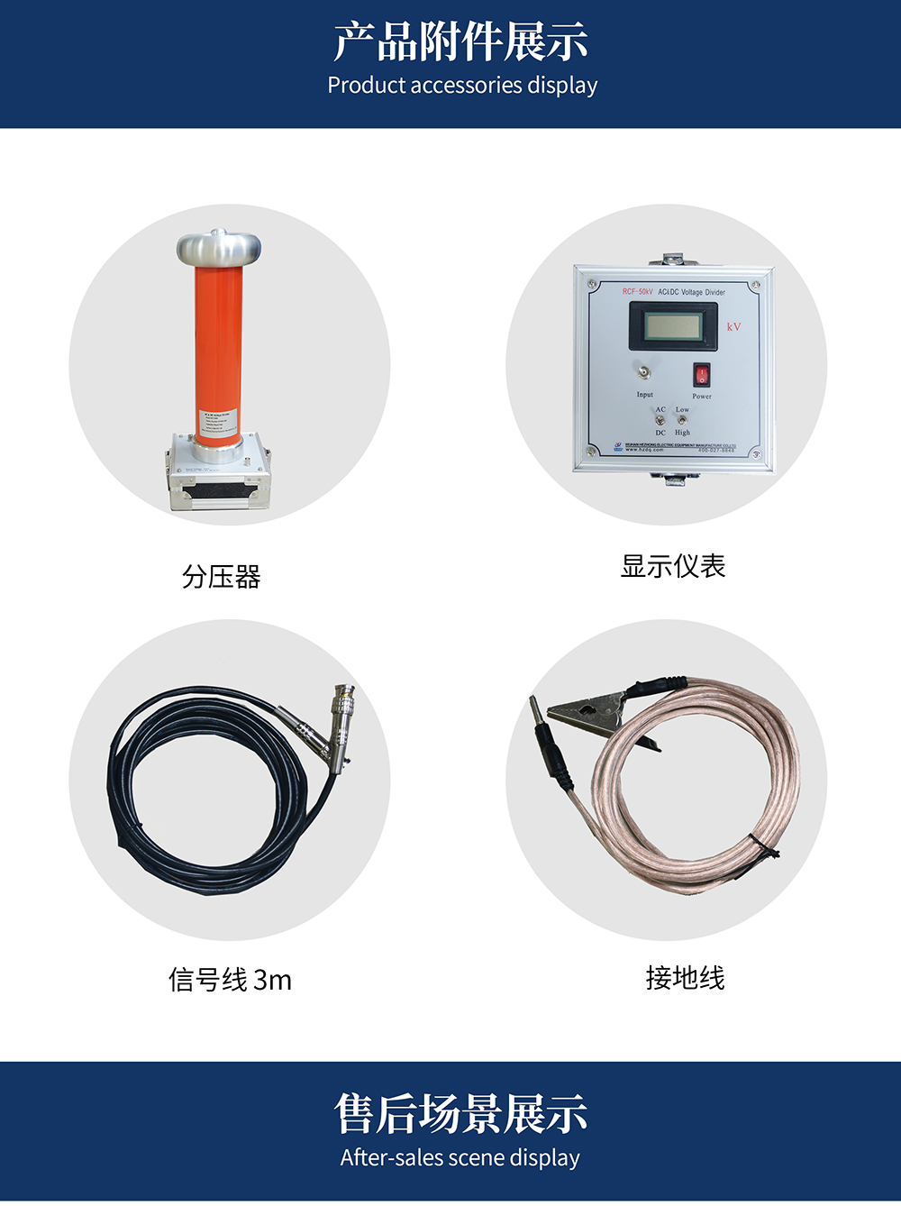 本產(chǎn)品作為高電壓測量之理想設(shè)備,主要用于電力系統(tǒng)及電氣電子設(shè)備制造部門測量工頻交流高電壓和直流高電壓。本儀器由高壓分壓器和低壓顯示表兩部分組成,兩者采用配套電纜連接使用。
