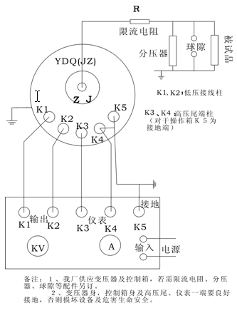 注:高壓輸出串激線與儀表及高壓尾應可靠相連,否則易擊穿變壓器。 接線請校極性。