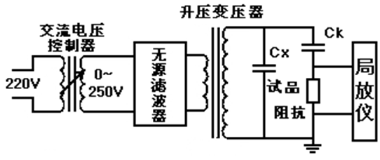 接線圖參考局部放電檢測儀接線(如下),升壓使用與普通交流耐壓試驗操作方法相同。