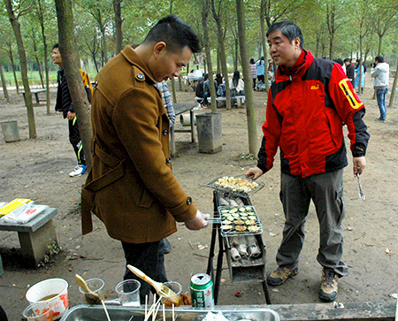 武漢的冬季已經(jīng)充滿寒意,特別是剛下過雨之后。但在農(nóng)耕年華卻是另外一番景象。幾組朝氣蓬勃充滿活力的團隊正積極地準備著燒烤的食材。大家積極配合,一起動手,忙中透著輕松快樂的氣氛。